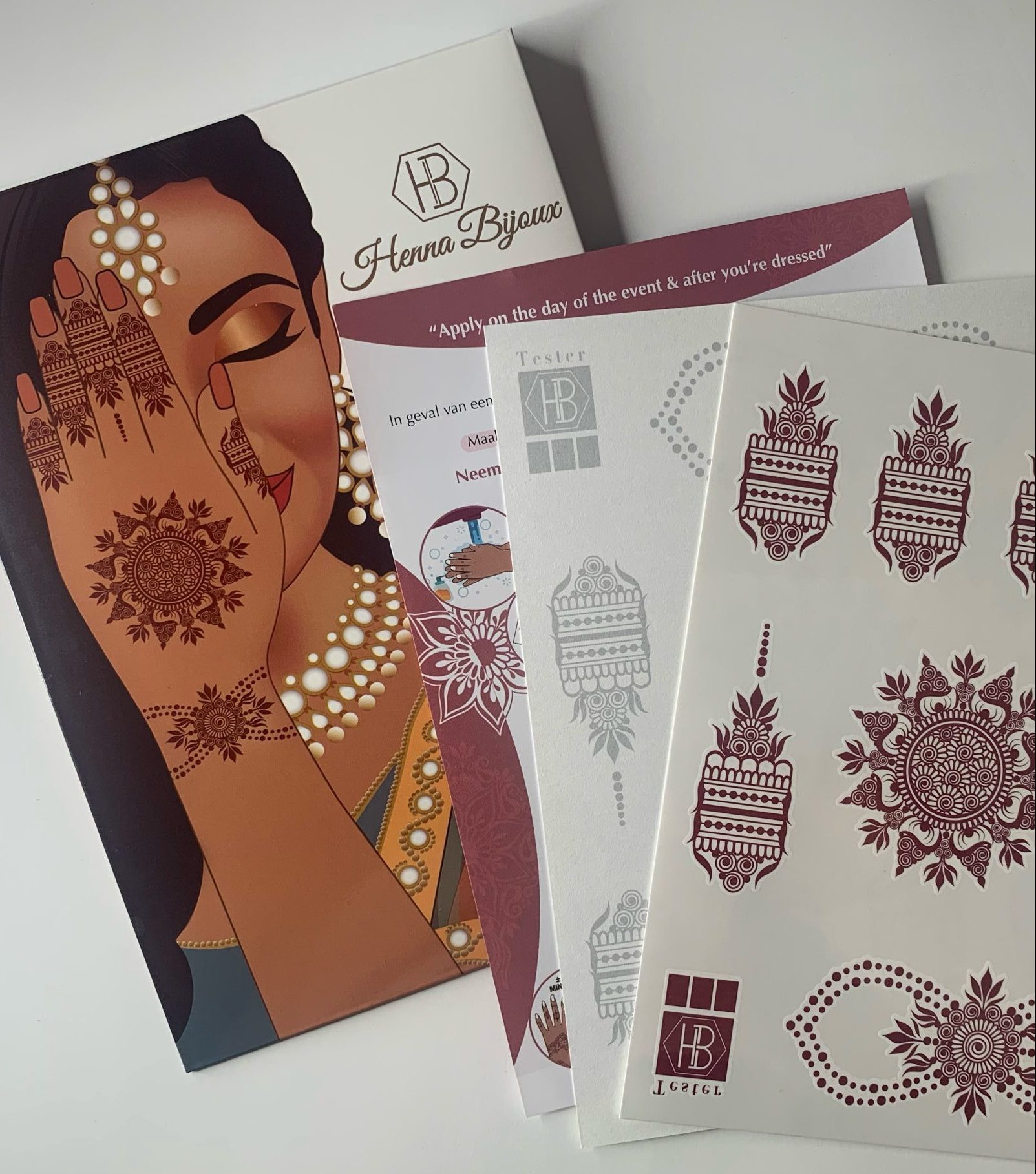 - Henna Bijoux is uitsluitend bedoeld voor uitwendig gebruik, zoals op de voeten, handen, etc.
